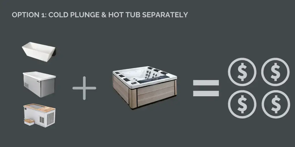The benefits of going down the separated hot tub / cold plunge route are that you can get a larger hot tub (seat 6 people on average) and you can customize a few more settings with your hot tub (e.g. waterfalls, seating styles, exterior look etc.). There are not any noteworthy benefits to buying an individual cold plunge separately.